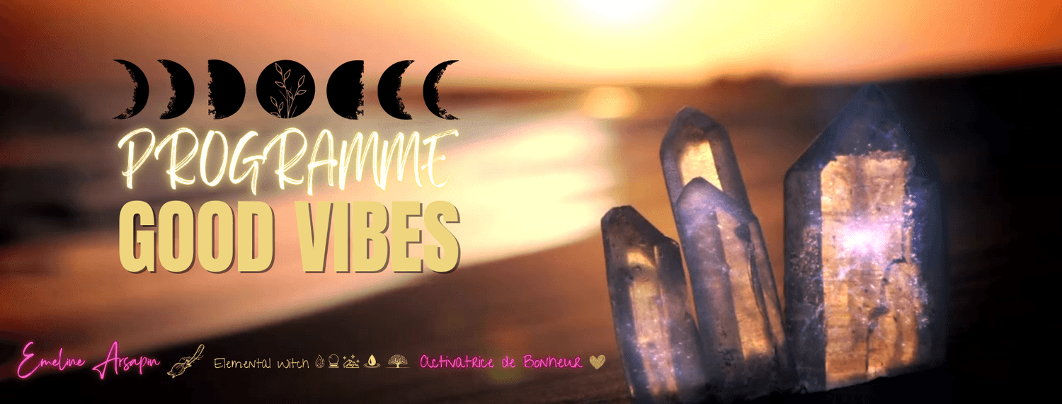 J’ai créé GOOD VIBES pour t’apprendre à faire du bonheur ta philosophie de vie. Un espace où tu réapprends à te synchroniser aux rythmes de la Nature, à écouter les messages de ton habitat, et à danser avec les énergies qui t’entourent au lieu de leur résister.
